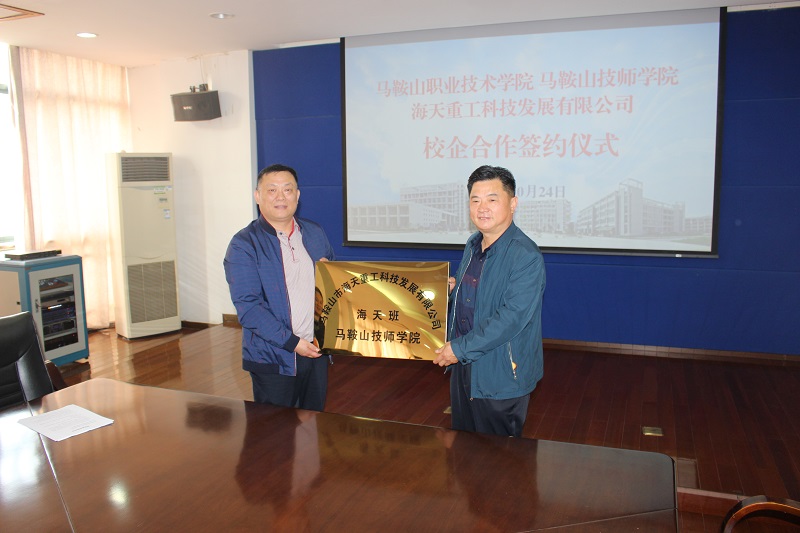 2019年10月24日下午,海天重工與馬鞍山技師學院校企合作邁出重要一步----“海天班”正式掛牌。
