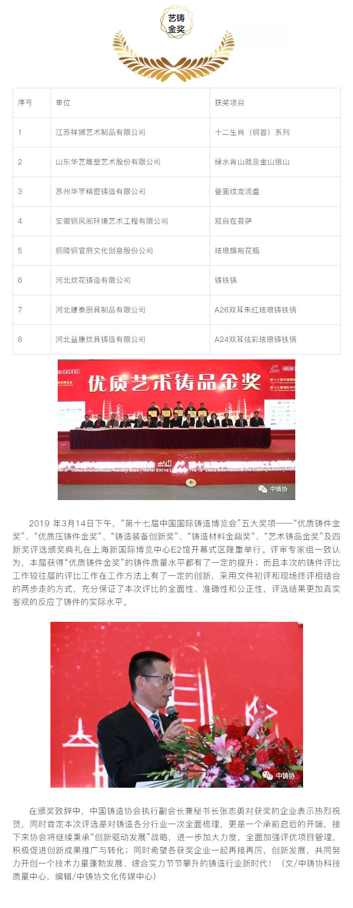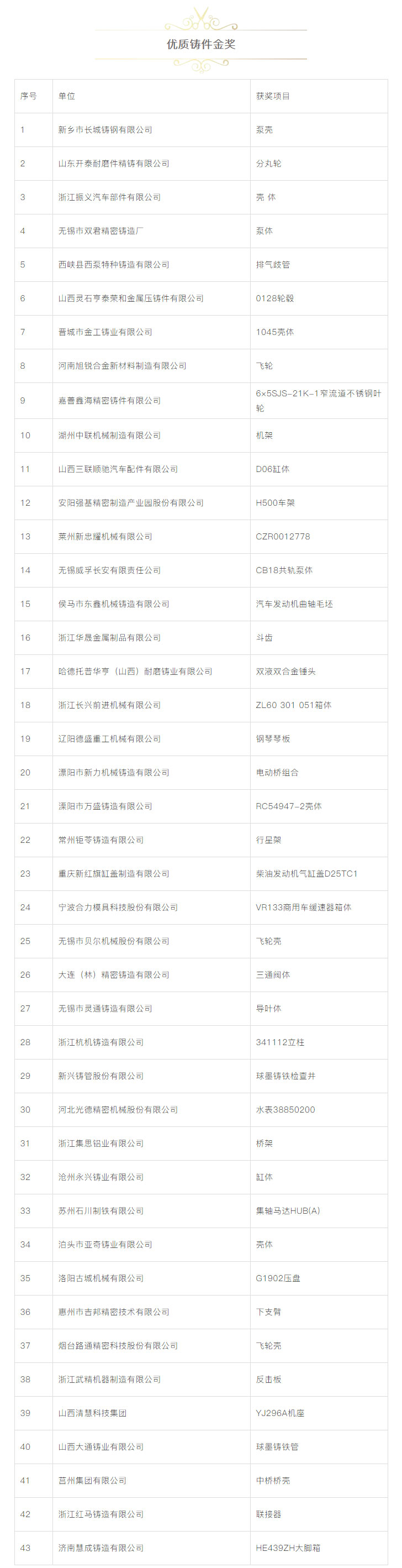 為了進(jìn)一步鼓勵(lì)鑄造行業(yè)科技創(chuàng)新,推動(dòng)鑄造行業(yè)質(zhì)量工作,更好地服務(wù)于鑄造行業(yè)轉(zhuǎn)型升級(jí),本著“評(píng)先獎(jiǎng)優(yōu)”’的原則,中國(guó)鑄造協(xié)會(huì)在“第十七屆中國(guó)國(guó)際鑄造博覽會(huì)”及“第十三屆中國(guó)國(guó)際壓鑄工業(yè)展覽會(huì)”期間,繼續(xù)對(duì)參展的鑄件、壓鑄件、鑄造裝備、鑄造材料、藝術(shù)鑄品及四新技術(shù)開展了評(píng)比活動(dòng)。本次評(píng)選活動(dòng)得到廣大參展商的大力支持,共有154家企業(yè)的200余件展品參與申報(bào)評(píng)優(yōu)。